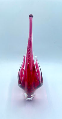 This piece is defined by its rare colourway. Three tones flow through the glass: cranberry, magenta, and plum. The cranberry glows when it catches the light, the magenta brings vibrancy, and the plum adds depth and balance. As you move around it, the colours shift subtly, revealing layers that are easy to miss at first glance.